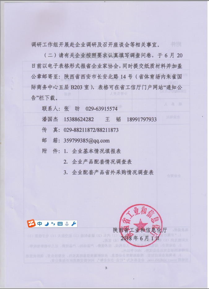 陜西省工業(yè)和信息化廳關于開展重點行業(yè)企業(yè)產(chǎn)品配套情況調研的通知
